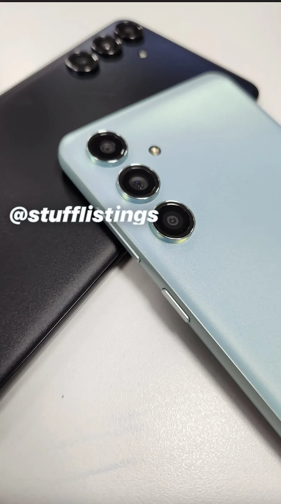 Vi ser att den här telefonen kommer få ett bakstycke i plast med tre kameror på baksidan tillsammans med en blixt. Vi ser också att telefonen kommer bli tillgänglig i minst två kulörer.